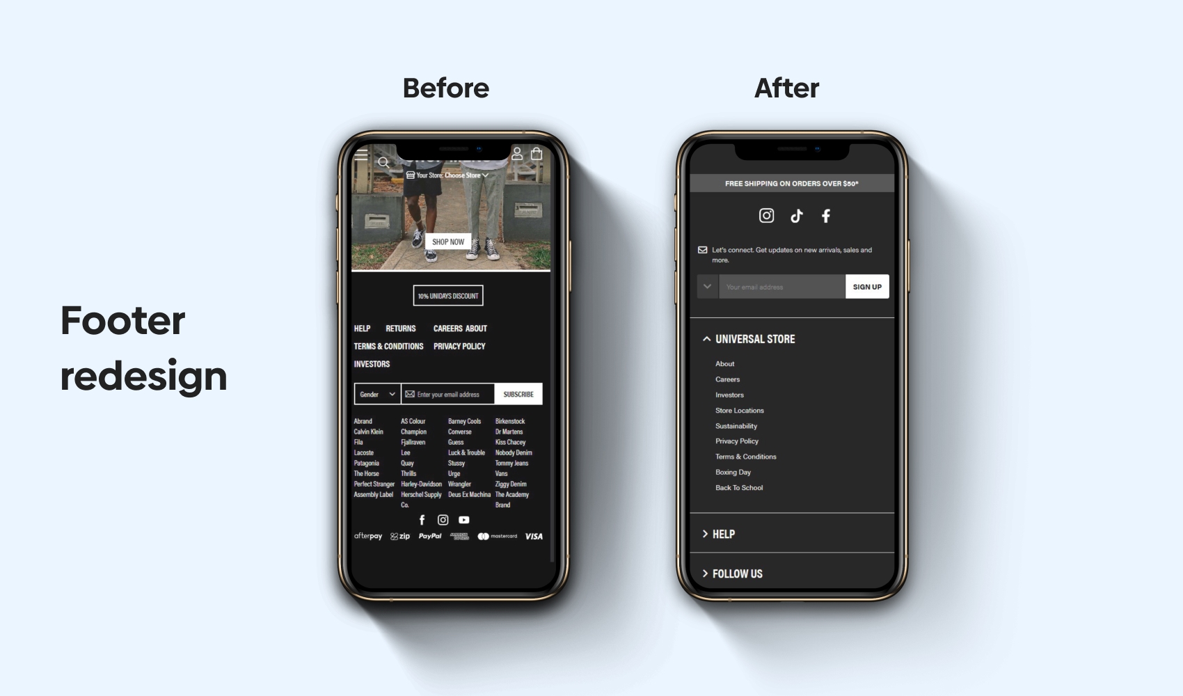 In creating a design system for Universal Store’s brand portfolio, we solved a number of problems including: